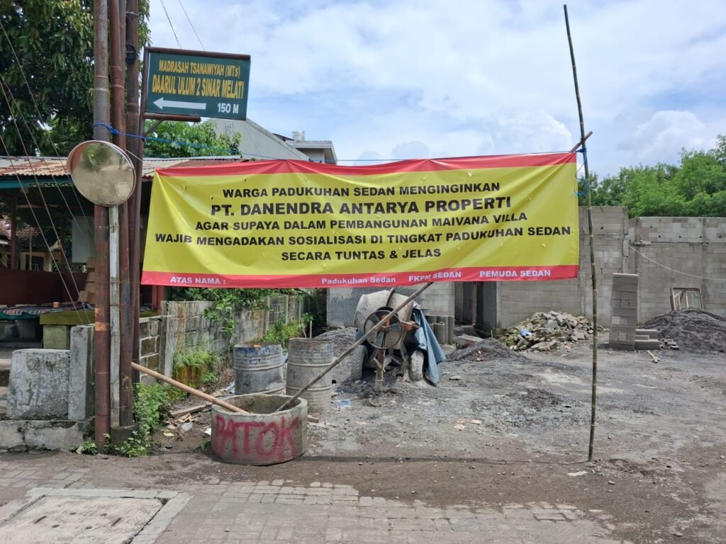 Pada awalnya perangkat dusun Sedan dan perwakilan warga diundang oleh pemilik usaha Maivana Villa yang akan mendirikan usaha Villa di wilayah dusun sedan. Pada saat itu perwakilan warga dan perangkat dusun meminta agar pemilik usaha melakukan sosialisasi kepada warga sekitar. Setelah berjalannya waktu pemilik usaha mulai membangun Maivana Villa di wilayah Sedan. Beberapa warga dan perangkat dusun kemudian berusaha meminta konfirmasi ke pemilik usaha kenapa belum sosialisasi ke warga proyek sudah di bangun. Jawaban pemilik usaha bahwa sosialisasi sudah dilakukan kepada warga Rt. 01 Sedan sebelum memulai proyek dan warga sudah setuju. Warga beralasan menolak pembangunan Maivana Villa dikarenakan sosialisasi hanya bagi warga rt. 01 sedangkan kepada perangkat dusun dan warga Sedan yang lain kenapa tidak dilakukan. Sedangkan warga dusun Sedan terdiri dari 7 Rt.
